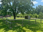 Facilities: Experience southern hospitality at our 54 stall stables. Let your horses enjoy sanitized 12' x 12' cinder block stalls (no nails) with fresh shavings. Sanitized water buckets provided. Six paddocks available upon request and also a 100' x 200' riding arena with sand. We offer (2) 30 amp and (1) 50 amp RV hookups. Generators, if needed, are provided. $35 per horse/RV nightly. Horse sitting also available. Relax by our firepit, grill out or spend some time fishing in our stocked pond. Just be sure to throw the fish back in for the buckaroos! Contact us for more information.