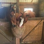 Facilities: 10' x 14' box stalls with half doors These stalls are inside our 60' x 135' indoor arena. which has Premier footing.. We have a 60' outdoor round pen and the use of a wooded paddock for turn out if desired. Ample trailer parking. We also offer primitive tent camp sites through Hip Camp which can be booked through a separate site. Quiet, small, working farm. Family run since 1982. Grass hay bales available - $6 for 50 pounds.