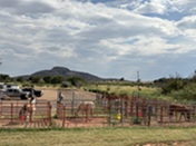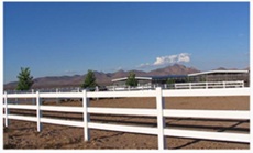 Location:  Off I-10 take NM exit 5, Hwy. 80. Between mile markers 9 & 8, turn at the large sign "Rusty's". Estrella Parkway. Estrella will make a right turn onto Caballo. Take Caballo to the first right (dead end). You will see all the white vinyl fencing and white buildings with blue roofs.