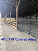 Facilities:  12' x 12' matted stalls. Paddocks available. 125' x 250' outdoor, 80' x 168' indoor, round pen. Full restroom with shower, heated wash stall. Easy access for big rigs. Overnight parking with electric, water, and a dump station available. Longer stays welcome. Many trail systems within a short drive. Pets are welcome on a leash, hay and shavings available for purchase. Viewing room with pullout and amenities available for overnight.
