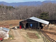 Facilities:  We provide overnight lodging for people and their horses traveling through our beautiful state. We have unique, small cabins with attached paddocks or fenced pasture for your equine companion(s) on our lovely farm in Colfax Township, NC. Stalls are also available in our center-isle barn. We have miles of country roads for your daily riding pleasure or trailer to nearby South Mountain Park (26 miles) or the Broad River Greenway (14 miles) for a scenic, more difficult trail riding experience. We are also just 24 miles from the Tryon International Equestrian Center and are happy to accommodate overflow from their facilities