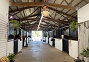 Facilities: Ranch for short stay or long, race track options, or indoor arena next door. Training Center with 150 stalls, 3 round pens of different sizes, turn out pastures, 3 turnout paddocks, 1 grass arena. Indoor exercise area in barns, each barn has 2 wash areas, hay storage, 4 tack rooms, has roll up canvas for fresh air and views, walkers. RV full hookup, furnished dorms with showers and laundry mat. Gorgeous gated, secured, farmland. No arrivals after 9 p.m.; gate closes at 10 p.m.