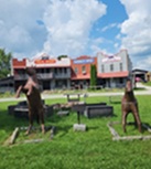 Facilities: Experience southern hospitality at our 54 stall stables. Let your horses enjoy sanitized 12' x 12' cinder block stalls (no nails) with fresh shavings. Sanitized water buckets provided. Six paddocks available upon request and also a 100' x 200' riding arena with sand. We offer (2) 30 amp and (1) 50 amp RV hookups. Generators, if needed, are provided. $35 per horse/RV nightly. Horse sitting also available. Relax by our firepit, grill out or spend some time fishing in our stocked pond. Just be sure to throw the fish back in for the buckaroos! Contact us for more information.